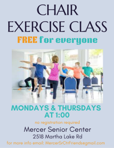 We’ll be offering our Chair Exercise Class twice a week starting on Monday, January 5, 2026. Join us on Mondays and Thursdays at 1:00-1:30 p.m. for a video class. No registration required, and no fee.